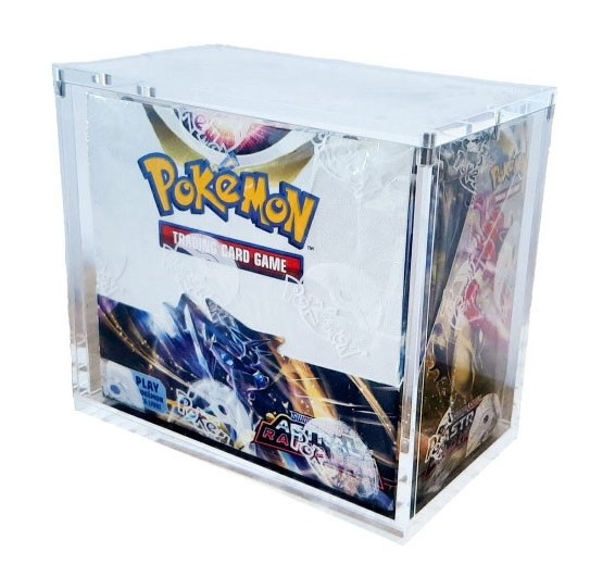 This Acrylic case with UV shielding is designed to safeguard and elegantly showcase your Pokémon booster box. Composed of 6 mm transparent Acrylic, the case features a top-lid secured by six robust magnets. It's crafted from non-PVC, acid-resistant substances ensuring maximum protection.