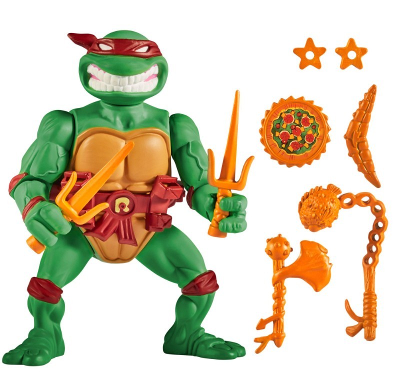 Comes with all of Raphael’s classic weapons and accessories — sais, throwing stars, and other ninja gear — so he’s always ready for battle.