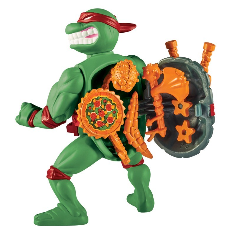 Raphael’s signature shell doubles as a storage compartment — perfect to stash his ninja gear and surprise your foes.