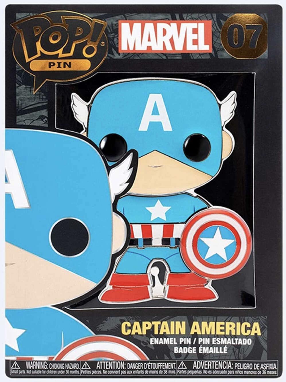 Stand for freedom and classic Marvel style with Funko POP Pin – Marvel – Captain America (07). Released in 2021, this large enamel pin captures Steve Rogers in his iconic star-spangled suit with shield raised, combining comic-book nostalgia with Funko’s bold Pop! Pin design.