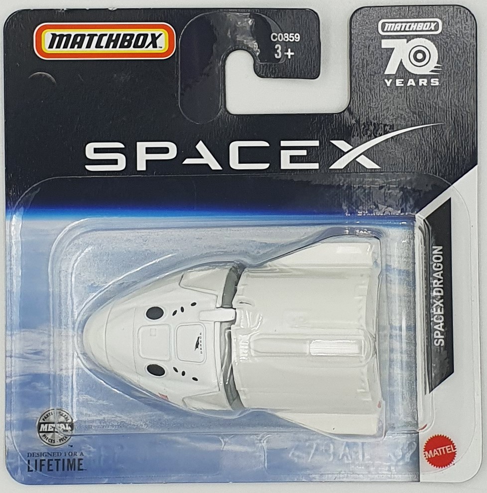 With its smooth white capsule shape and recognizable Dragon-inspired detailing, this model stands out from traditional road vehicle releases in the Matchbox range.