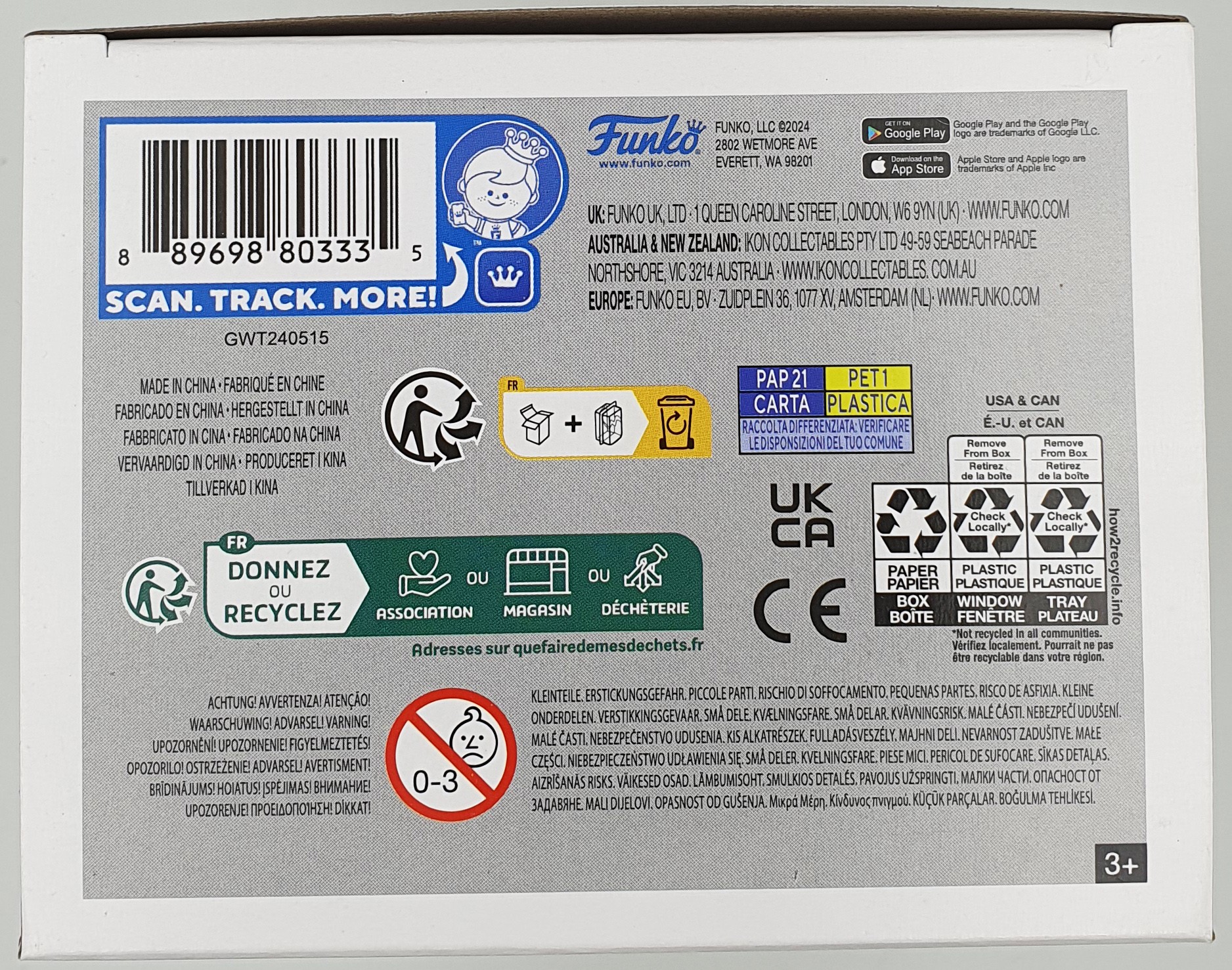 De doos heeft een gedeukte hoek linksachter aan de bovenkant – zichtbaar.